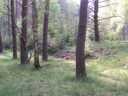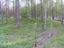 | 160. Pryzmy po południowej stronie śladu berlinki, na granicy lasu przy DW163. Widok w kierunku Królewca. Typ Y. | 161. Pryzma po północnej stronie śladu berlinki (być może ta sama co na następnym zdjęciu), w tle, w dole widoczna DW163. Widok w kierunku Królewca. Typ Y. |