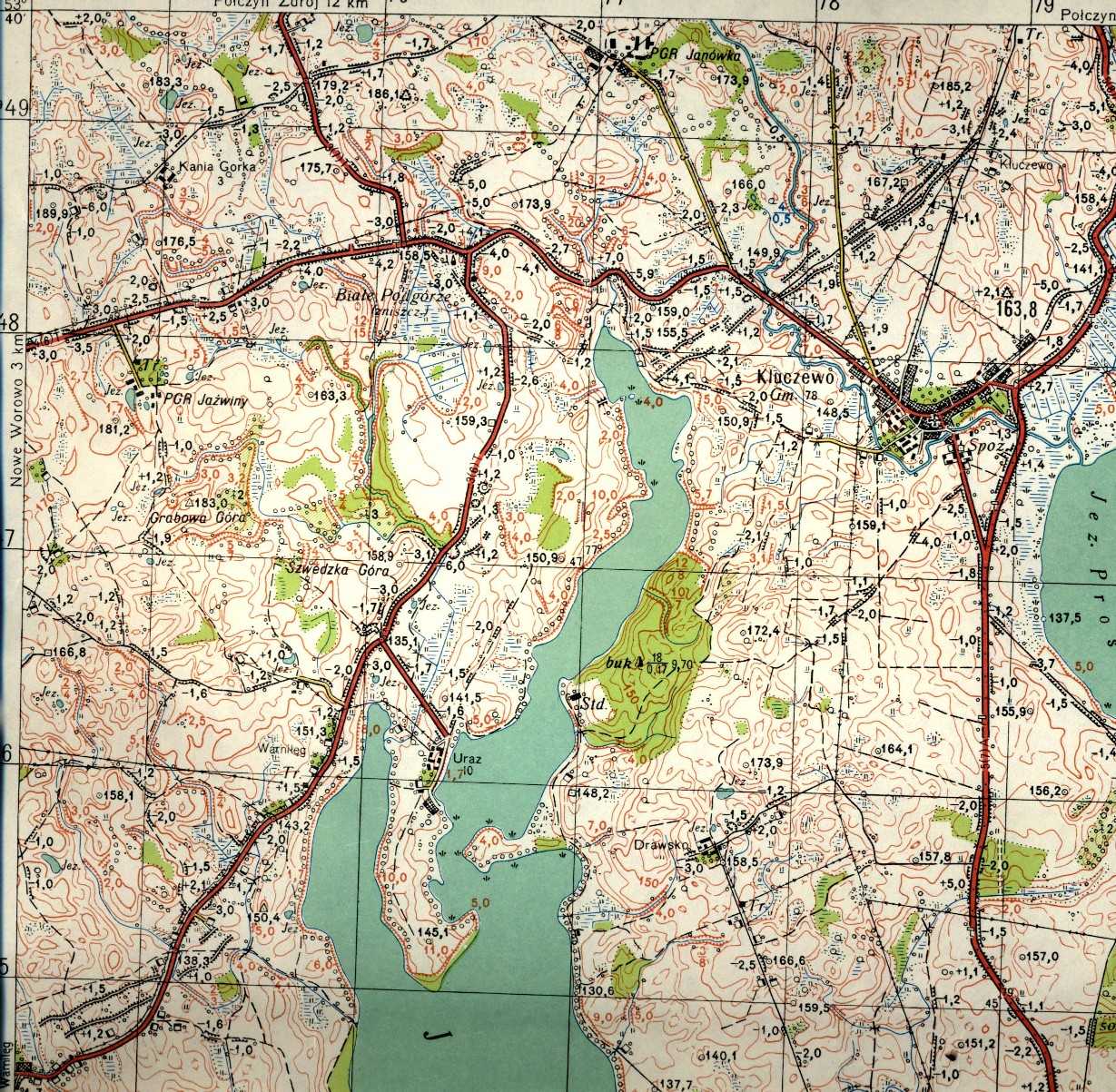 przecina szosę Dłusko - Sarnikierz. Widok na południe (w lewo Królewiec, w prawo Berlin). Typ S. |
