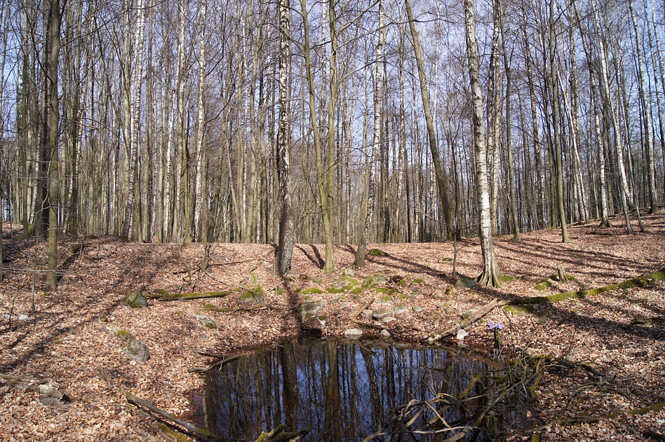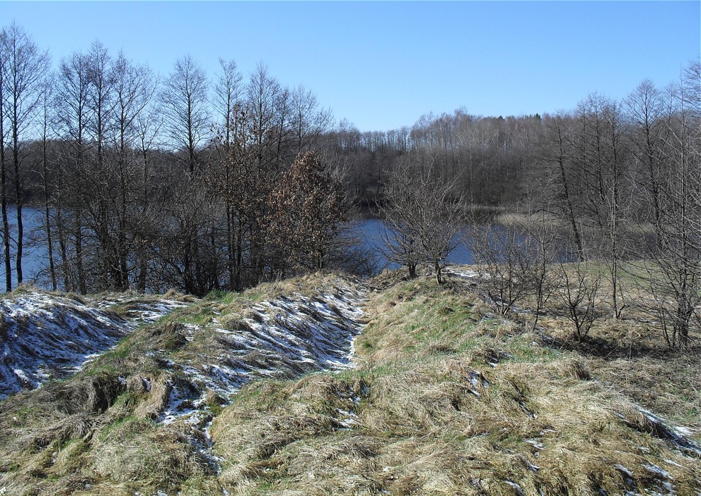 | 32.Staw jaki powstał w śladzie autostrady, zapewne w skutek wykonanego "dołu" (wybrania torfu) na podmokłym terenie ze strumykiem. Widok w kierunku Berlina. Typ W. |