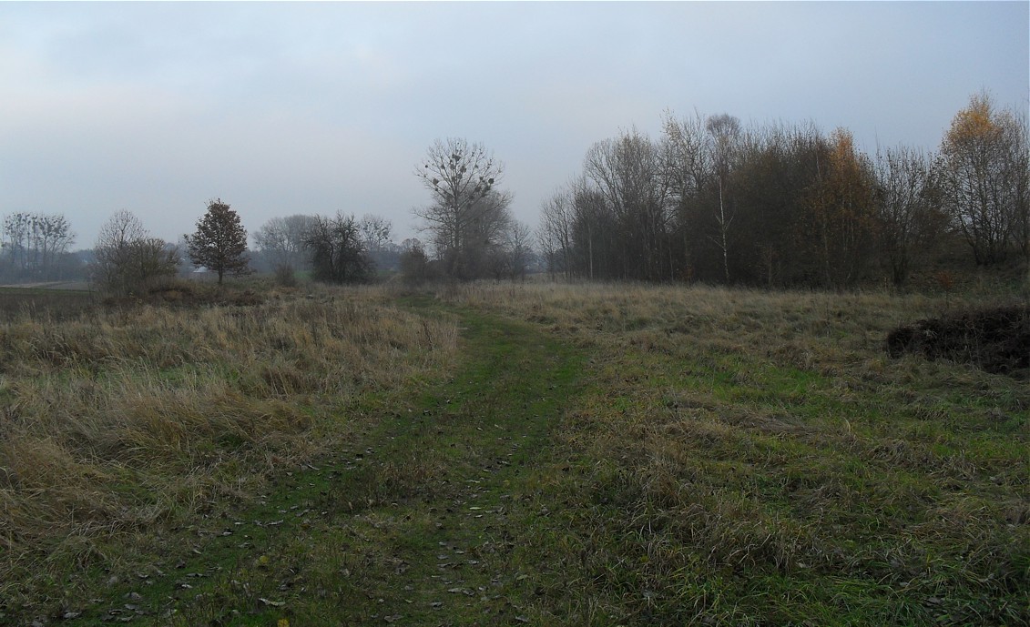6.Wgłębienie, na północny wschód od Lisowa, którym miała iść autostrada. Widok w kierunku Berlina, z przyczółku nasypu, gdzie miał być wiadukt dla drogi lokalnej Chociwel - Lisowo. Typ B. |