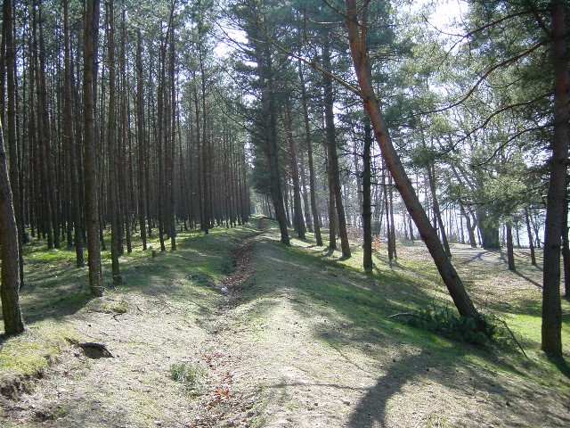 | 28. Niewielkie pryzmy ziemi tuż przed rzeczką Kania i osadą Owśniczka. Na widzianych w tle polach uległy niwelacji. |